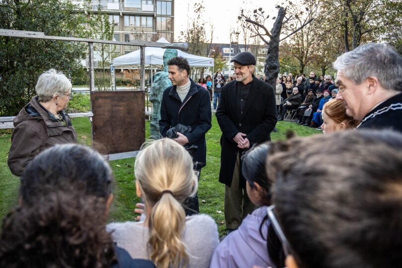 In het Van Gemertplantsoen bij station Diemen is dinsdag het Holocaustmonument Diemen onthuld. Het kunstwerk, dat bestaat uit drie losse beelden, is gemaakt door kunstenaar Jasper Krabbé. Sara de Vries, voorzitter van de Stichting Holocaustmonument Diemen, en wethouder Matthijs van den Berg onthulden de plaquette met de namen van de Joodse inwoners van Diemen die in de Tweede Wereldoorlog vermoord werden. De namen van deze mensen werden opgelezen door kinderen uit Diemen. De Vries sprak de wens uit dat het monument een bron van bezinning en herinnering zal zijn. ‘’Een plek waar we realiseren dat vrijheid kwetsbaar is, en dat medemenselijkheid en verdraagzaamheid nooit vanzelfsprekend zijn. Maar vandaag buigen wij ons hoofd. In stilte, in respect, in herinnering aan de vermoorde Joodse inwoners van Diemen’’. Esther Shaya en Sandy Grishaver-Kalisingh, bestuursleden van de Stichting, hebben ook een speciaal tijdschrift gemaakt voor de leerlingen van de hoogste groepen van de basisschool. Daarin staat meer informatie over het monument en drie verhalen van Joodse mensen die voor de oorlog in Diemen woonden.
