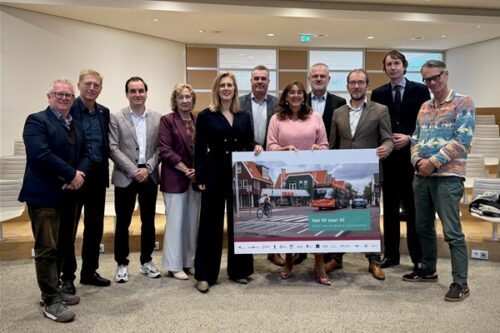 Invoering van 30 km zones in randgemeenten van Amsterdam, waaronder Diemen, kan gevolgen hebben voor de doorstroming van het openbaar vervoer. De gemeenten werken daarom aan invoering van 30 km op wegen waar dat het meeste verschil maakt en behoud van een aantrekkelijk en betrouwbaar openbaar vervoer. Ook moeten er heldere afspraken worden gemaakt tussen de gemeenten, vervoerders en de Vervoerregio over uitvoering en kosten. Dat alles meldt de Vervoerregio Amsterdam na een overleg over de komende 30 km zones waaronder namens Diemen wethouder Hans Prins (uiterst links) deelnam. Vice-voorzitter Marja Ruigrok: ‘’De overgang naar 30 km/uur is een enorme stap richting veiliger verkeer. Dat vraagt om slimme oplossingen voor busroutes, zodat mensen ook in de toekomst snel en betrouwbaar met de bus kunnen reizen. Met deze aanpak brengen we veiligheid en bereikbaarheid in balans, samen met onze gemeenten en vervoerders.” De gemeente Diemen wil een 30 km zone invoeren op onder meer de doorgaande route Arent Krijtsstraat/Wilhelminaplantsoen/Prinses Beatrixlaan/Prins Bernhardlaan.