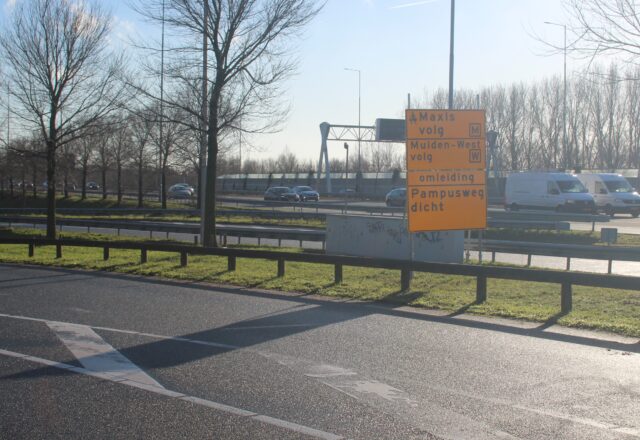 Door Amsterdam in Diemen geplaatst bord wijst naar onnodige omleidingen