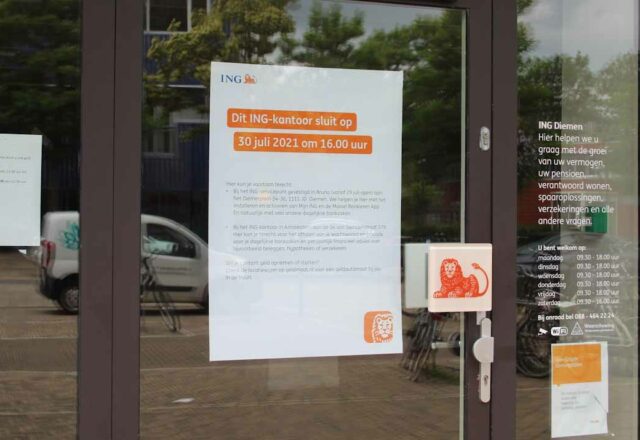 ING Bank gaat kantoor in centrum van Diemen nu ook sluiten