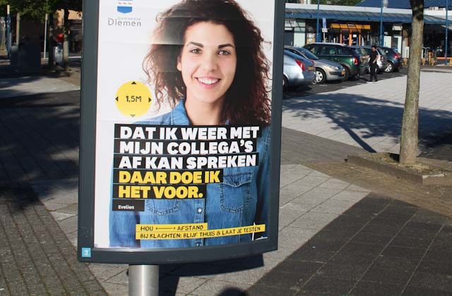 Diemen gaat na de coronahosts binnenkort coronawijzers inzetten in drukke gebieden.