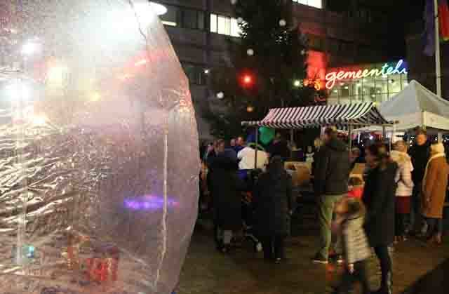 Diemer December Dagen van DaaromDiemen geopend met ontsteken lichtjes in kerstboom.