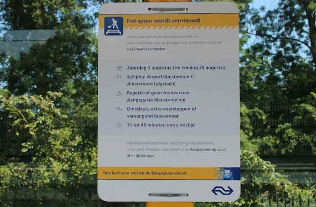 Opnieuw twee werkdagen geen treinen van en naar station Diemen, vervangend busvervoer.