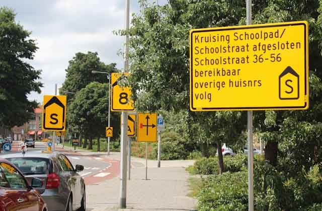 Werken in centrum van Diemen leiden weer tot woud aan gele omleidingsborden.