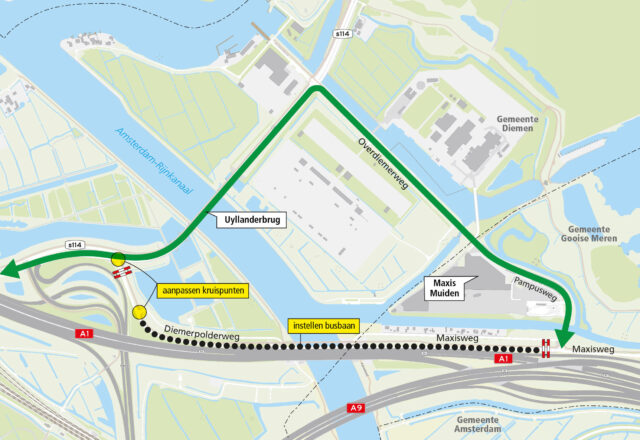 Weg van Diemen naar Muiden via Maxisbrug wordt ook busbaan